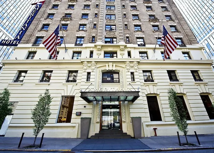 Ameritania At Times Square is a boutique hotel featuring modern accommodations within a historic Beaux-Arts building. This 4-star property offers a fitness center, a lobby bar, and complimentary Wi-Fi, positioned just steps from iconic attractions like Times Square and Central Park.