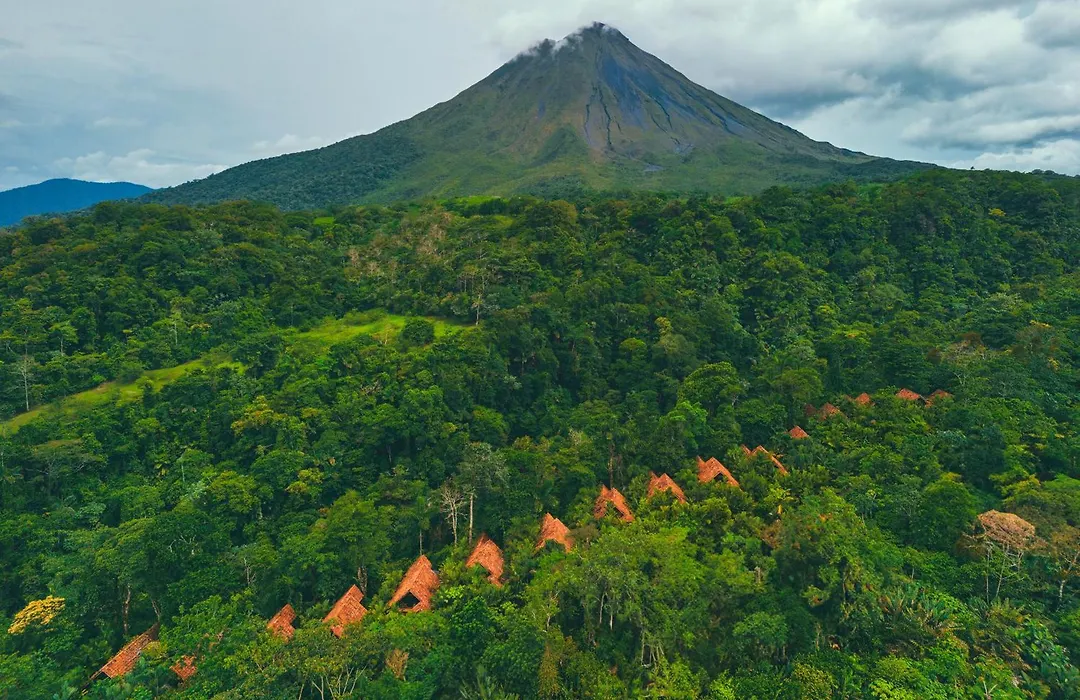 Amor Arenal Adults Friendly, a 5-star hotel with a 9.8/10 rating, offers unique accommodations within the tropical cloud forest, featuring Casitas with private heated plunge pools and stunning views of the Arenal Volcano. This La Fortuna hotel emphasizes wellness and adventure through various on-site and nearby activities.