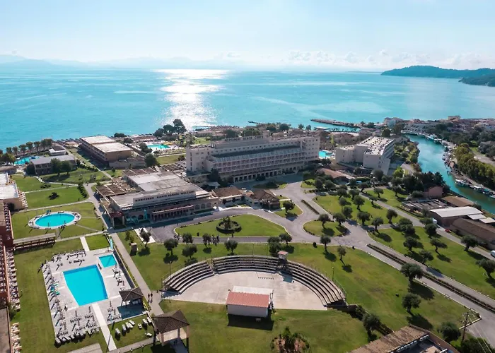 Mitsis Messonghi offers a vibrant beachfront resort experience in Moraitika, featuring 960 rooms surrounded by lush gardens and overlooking the Ionian Sea. The 4-star hotel includes multiple dining options, a mini aquapark, and extensive leisure facilities.