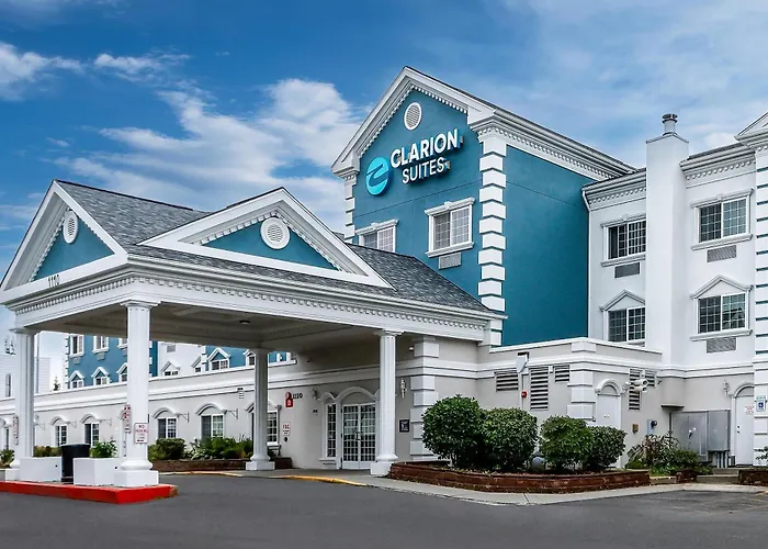 Clarion Suites Anchorage Downtown is a smoke-free hotel offering pet-friendly accommodations with spacious suites featuring separate living areas. Guests enjoy amenities such as free Wi-Fi, complimentary airport shuttle service, and a fitness center.