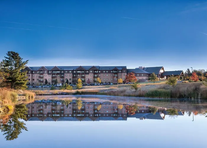 Club Wyndham Glacier Canyon, a 3-star Lake Delton hotel rated 9.6/10 on Booking.com, offers modern accommodation with access to indoor and outdoor waterparks, as well as dining and recreational options. This family-friendly resort features various types of lodgings including hotel rooms and spacious condos.