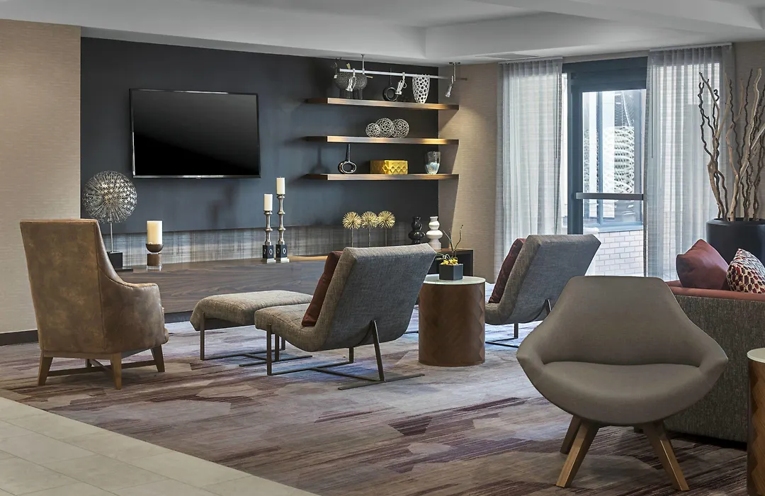 Business facilities include versatile meeting spaces totaling 1500 square feet, suited for various events and custom catering. The hotel is conveniently adjacent to public transportation, with the Newport PATH station and bus stops within minutes for easy access to New York City.