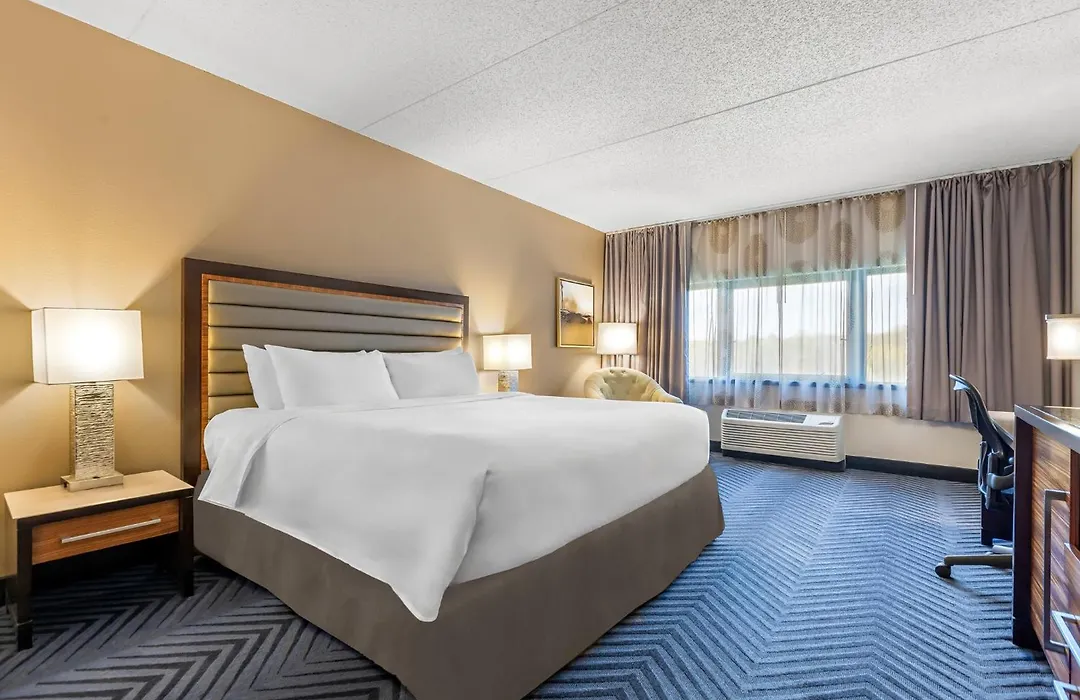 Each room at the Crowne Plaza features amenities such as a flat-screen cable TV, refrigerator, and soundproof walls. The spacious rooms also include a generous workspace and spa-inspired bathrooms. Guests can find 24-hour room service and a hot and cold breakfast buffet at the Forrestal Grille.
