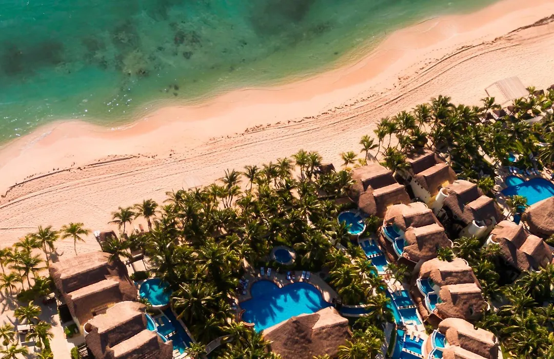 Leisure facilities include several pools, swim-up bars, and the new Casitas Spa offering treatments such as a Beachfront Sky Massage. The resort also features unique dining experiences like the food display with gourmet international and Mexican cuisine.