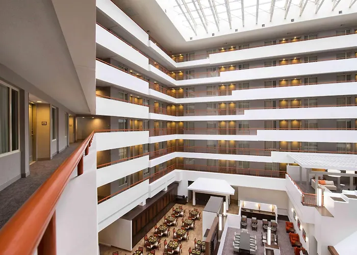 Embassy Suites By Hilton Baltimore At BWI Airport is a 4-star all-suite hotel featuring an indoor pool and fitness center. It offers a free cooked-to-order breakfast and complimentary shuttle service to nearby public transport options. This Linthicum hotel is rated 8.1/10 on Booking.com.
