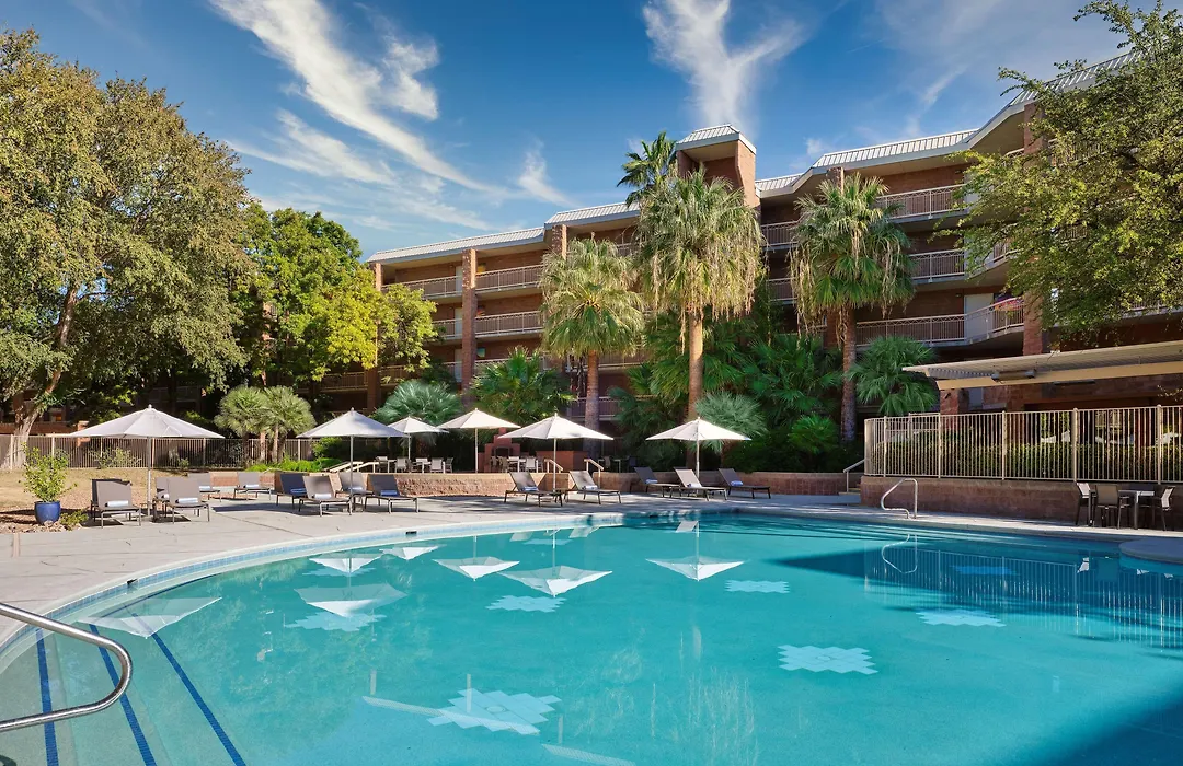 Embassy Suites By Hilton Tucson East is a 4-star all-suite hotel with an 8.4/10 rating on Booking.com. Notable amenities include an outdoor heated swimming pool, a fitness center, and complimentary made-to-order breakfast. The hotel features a prime location near various attractions such as the University of Arizona and Tucson Botanical Gardens.