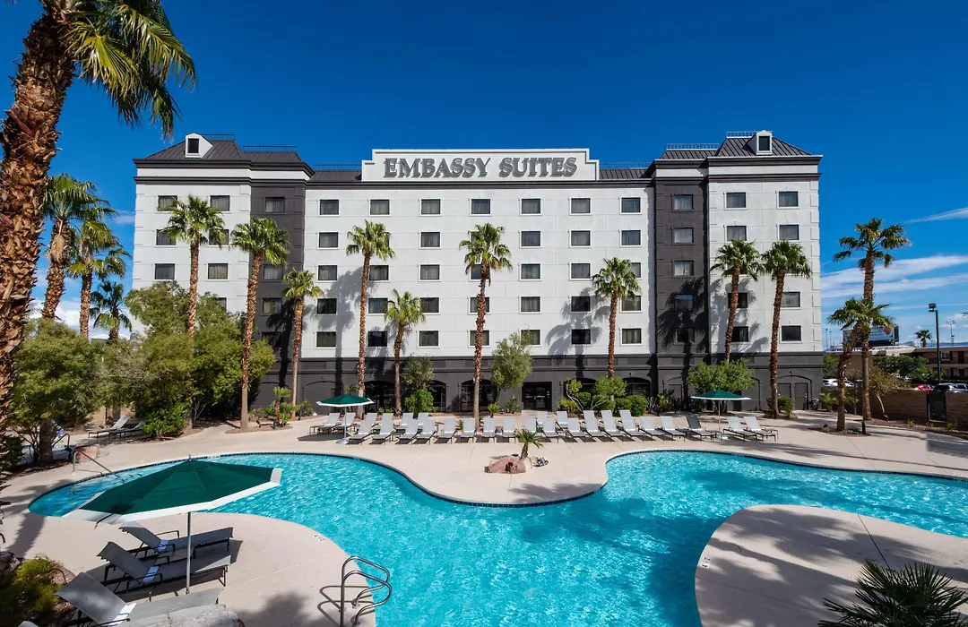 Embassy Suites By Hilton Las Vegas, a 4-star all-suite hotel, features spacious accommodations with a complimentary cooked-to-order breakfast and an evening reception. Amenities include a garden with an outdoor pool, a fitness center, and nearly 8000 square feet of meeting space.