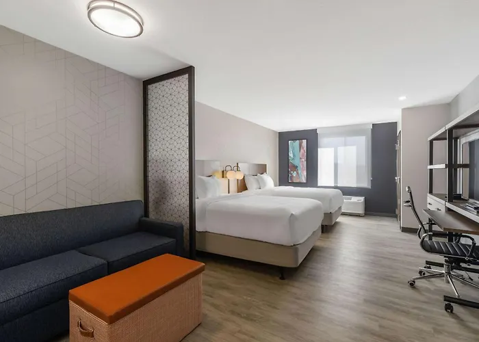 Everhome Suites Corona, rated 8.5/10 on Booking.com, offers practical amenities like a fitness center and free WiFi. This 2-star hotel features spacious rooms with fully equipped kitchens and is located in a vibrant district.