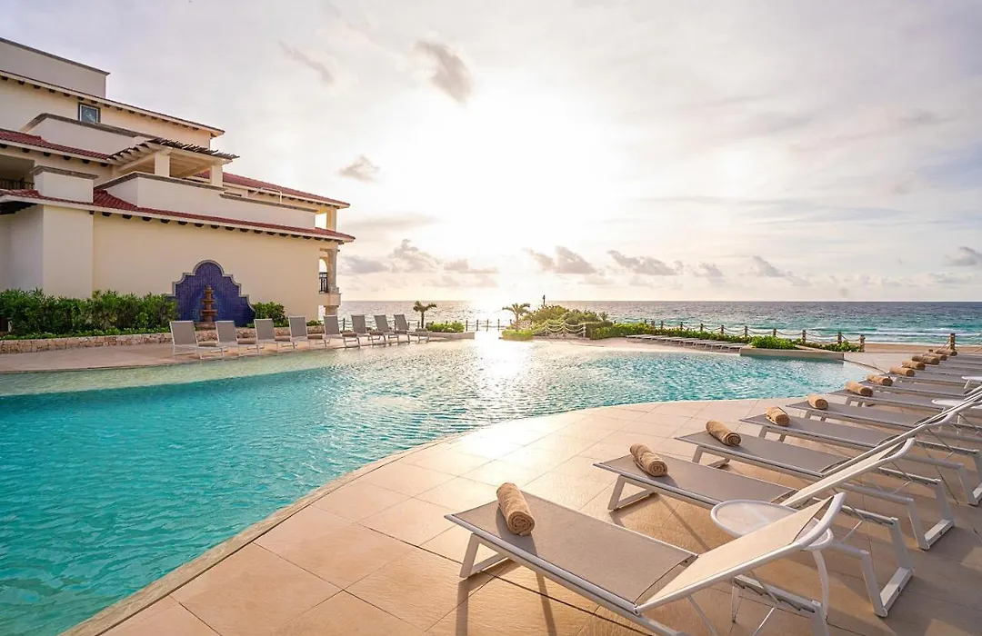 Grand Park Royal Cancun (Adults Only) is a 5-star beachfront hotel with an 8.3/10 rating, offering an all-inclusive experience. Guests can enjoy outdoor pools, diverse dining options, a spa, and direct access to sandy beaches.