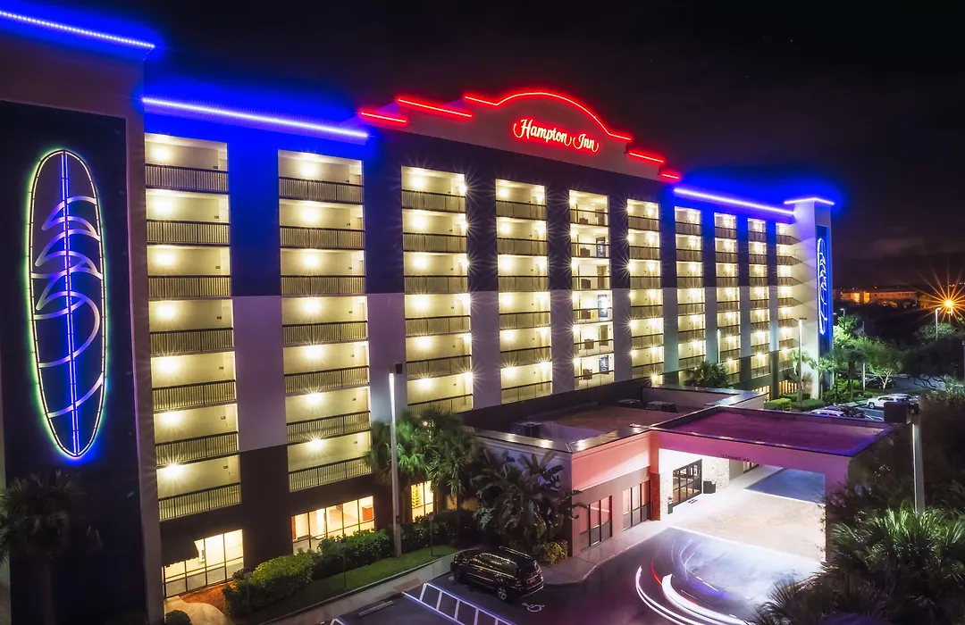The Hampton Inn Cocoa Beach features a 24-hour business center and meeting space totaling 5000 square feet. The hotel is pet-friendly and offers cruise terminal shuttles for a surcharge, enhancing travel convenience for guests.