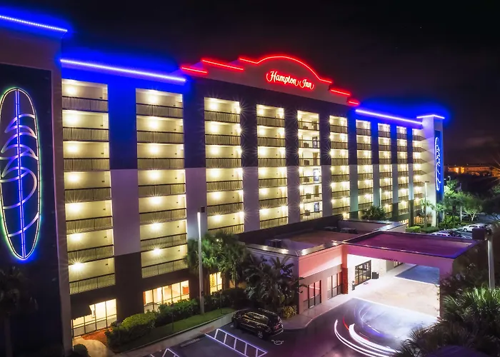 Hampton Inn Cocoa Beach offers direct beach access and family-friendly accommodations, featuring a 3-star rating and an 8.0/10 Booking.com rating. Guests can enjoy complimentary breakfast and amenities including an outdoor heated mineral pool and fitness center.