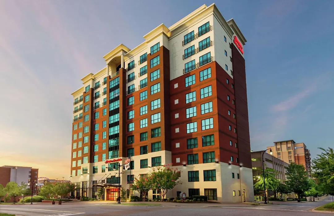 Hampton Inn & Suites National Harbor/Alexandria Area is a modern 3-star National Harbor hotel featuring 151 upscale rooms and studio suites. Amenities include free hot breakfast, free WiFi, a fitness center, and an indoor pool.
