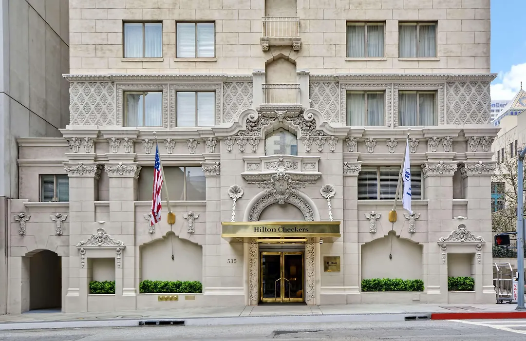 Hilton Checkers Los Angeles provides a blend of historic architecture and modern amenities in downtown LA's Financial District. This 3-star Los Angeles hotel features a rooftop terrace, gym, and Checker's Downtown restaurant offering California-inspired cuisine with French and Asian influences.