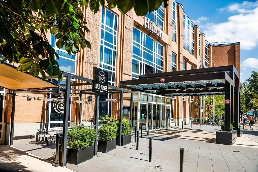 Hilton Munich City, a 4-star hotel with an 8.3 Booking.com rating, features modern accommodations and direct access to Rosenheimer Platz S-Bahn station. Guests enjoy convenient amenities such as a 24-hour fitness center, an on-site restaurant, and a stylish bar, Juliet Rose.