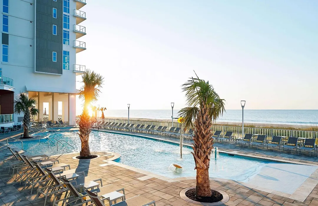 The hotel is conveniently located near various dining options such as Pier 14 Restaurant & Lounge, Mamma Mia Pizza, and LandShark Bar & Grill, all within a 0.3 miles radius. Guests can access beaches just a short walk from the property and experience the vibrant local culture of Myrtle Beach. Various stores and attractions enhance the overall guest experience.
