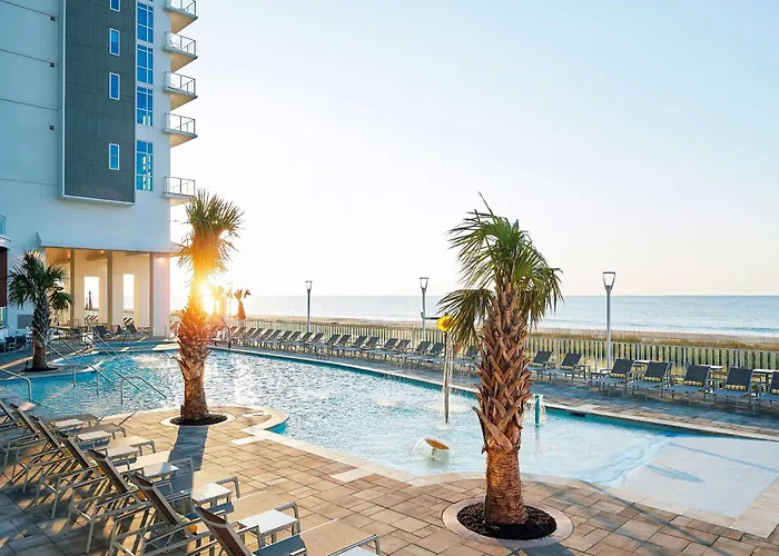 Hilton Grand Vacations Club Ocean Enclave Myrtle Beach is a 3-star beachfront hotel featuring suites with kitchens, a fitness center, and multiple outdoor swimming pools. The property offers easy access to the Boardwalk and local dining options. Rated 9.3/10 on Booking.com, this hotel provides family-friendly accommodations in Myrtle Beach.