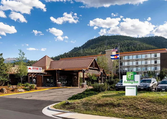 Holiday Inn Estes Park By Ihg is a 3-star hotel with a rating of 7.9/10 on Booking.com, situated near the entrance to Rocky Mountain National Park. It features an indoor heated swimming pool, an outdoor fire pit area, and a family-friendly game room.