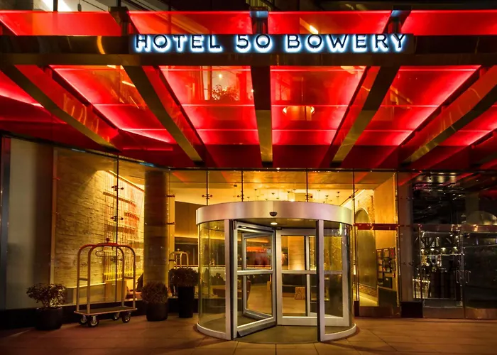 Hotel 50 Bowery, Part Of Jdv By Hyatt, offers a 4-star boutique experience in the dynamic Lower Manhattan area. This New York hotel features modern design elements, a rooftop bar named The Crown, meeting spaces, and a curated art collection. Amenities include a 24-hour fitness center, complimentary Wi-Fi, and pet-friendly accommodations.