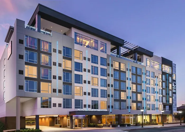 AC Hotel By Marriott Raleigh Downtown is a 3.5-star hotel offering 146 rooms with a focus on modern design. Key amenities include a rooftop bar, coffee shop/cafe, and free Wi-Fi throughout the property.