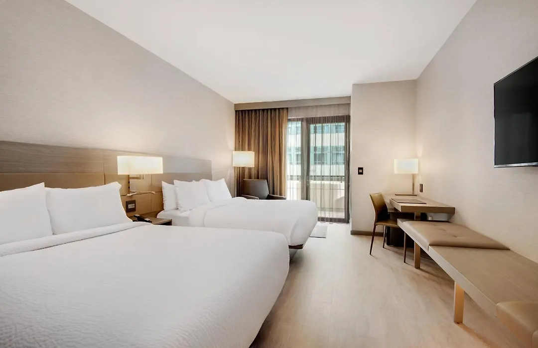 Dining options include the AC Kitchen, which serves a European inspired breakfast featuring assorted cheeses and freshly baked croissants, as well as the Capella on 9, offering a tapas-style menu with handcrafted cocktails.