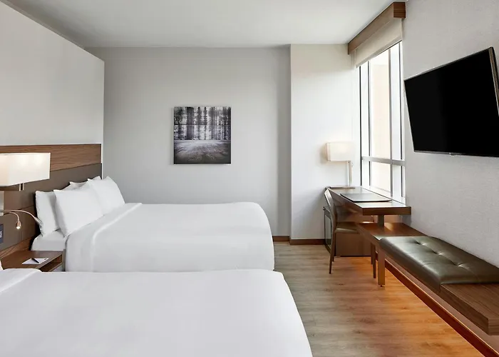 Rooms at Ac Hotel National Harbor Washington, D.C. Area feature upscale amenities, premium bedding, and panoramic views of the Potomac River. Each air-conditioned room is equipped with a flat-screen TV, coffee machine, and a private bathroom with designer toiletries. Guests can upgrade to suites for enhanced comfort and stunning views.
