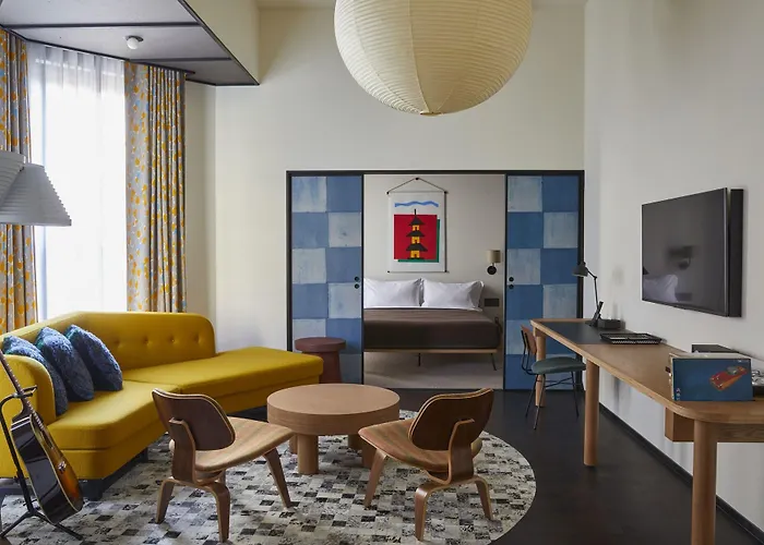 The hotel includes a state-of-the-art fitness center and hosts live DJ events, enhancing its entertainment offerings. The lobby serves as a communal space, showcasing local art and music. It is also a venue for special events such as workshops and showcases.