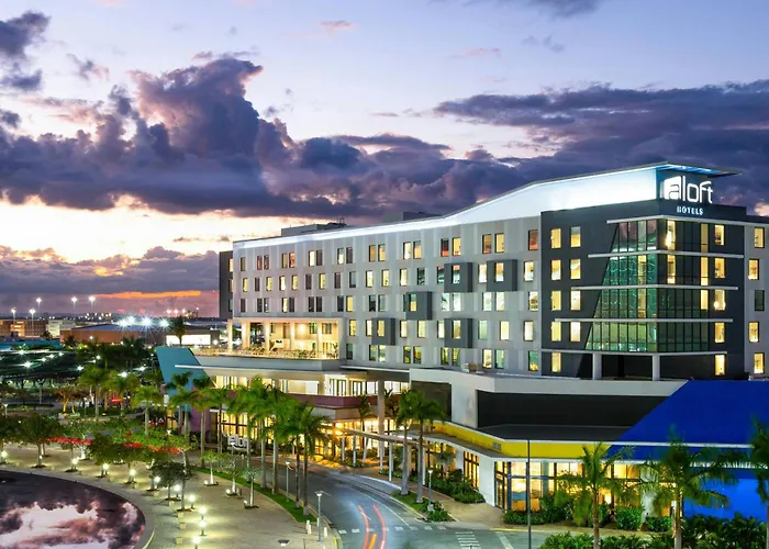 Aloft San Juan is a vibrant modern hotel located in the Distrito T-Mobile, Puerto Rico's new entertainment hub. This 3-star hotel features technology-driven spaces, complimentary Wi-Fi, and an outdoor swimming pool, appealing to travelers seeking a lively social scene.