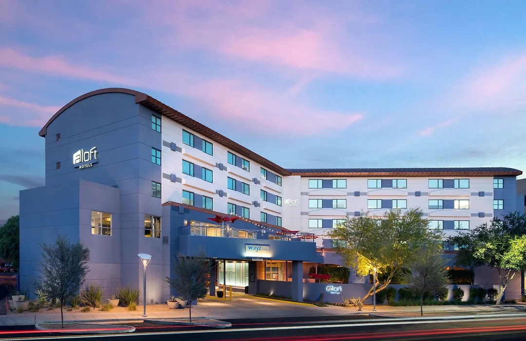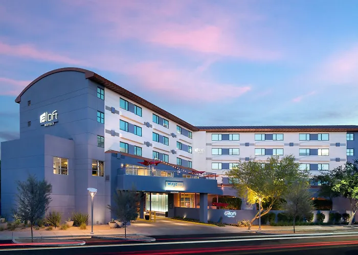 Aloft Scottsdale, a 3-star hotel rated 8.3/10 on Booking.com, offers modern accommodations with a trendy, minimalist design. Key amenities include a fitness center, an outdoor swimming pool, and on-site dining options at the W XYZ bar, serving light bites and craft cocktails.