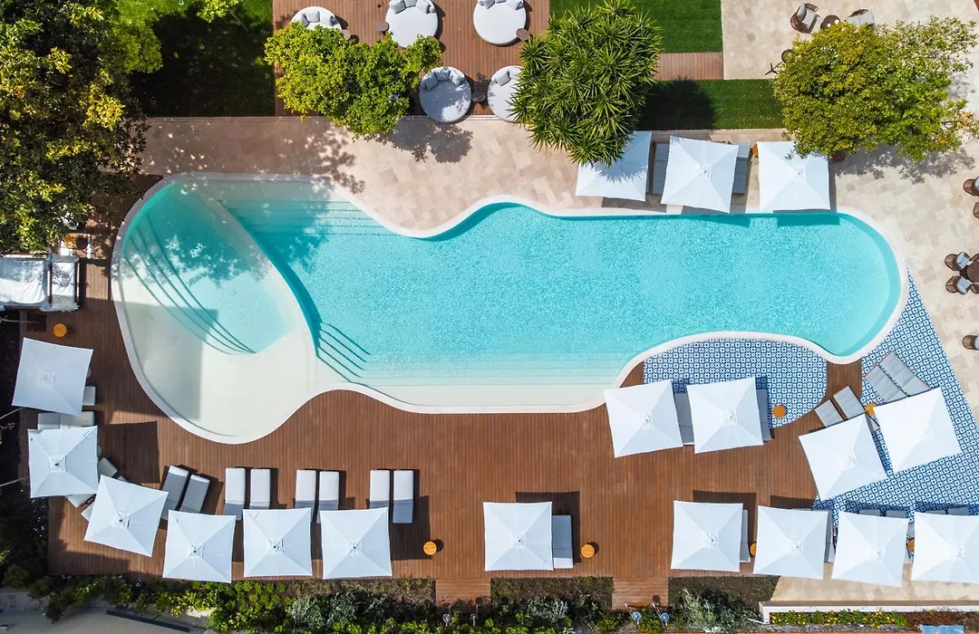 Ara Maris Hotel & Spa, a 5-star Sorrento hotel with a 9.4/10 rating on Booking.com, features an outdoor area with two swimming pools and a lush garden. Guests can enjoy exceptional dining at the Cora Bistrot and cocktails at the Lumi Sky Lounge, which offers panoramic views of the Gulf of Naples while promoting sustainability.