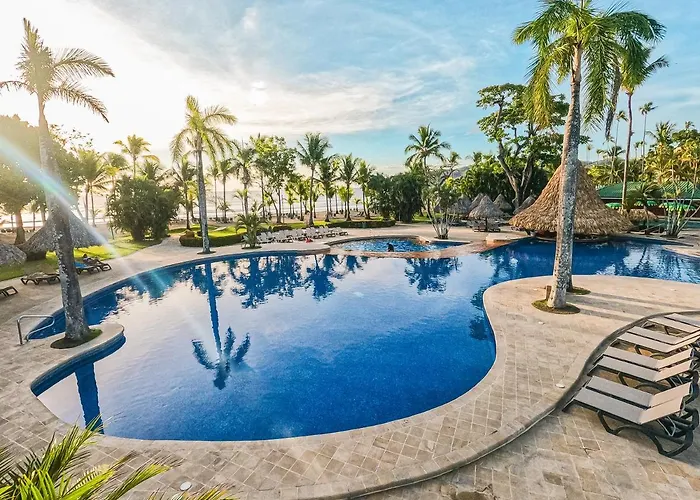 Barceló Tambor, a 5-star beach hotel, offers an All Inclusive program and is known for family-friendly accommodations and extensive water sports facilities. The hotel provides a variety of dining options, two outdoor pools, and a range of entertainment tailored for guests of all ages.