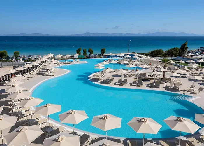 Belair Beach Hotel, a 4-star Ixia (Rhodes) hotel, offers direct access to Ixia Beach and features a family-friendly atmosphere with various leisure activities. Amenities include two large outdoor pools, a children's pool, and sports facilities.