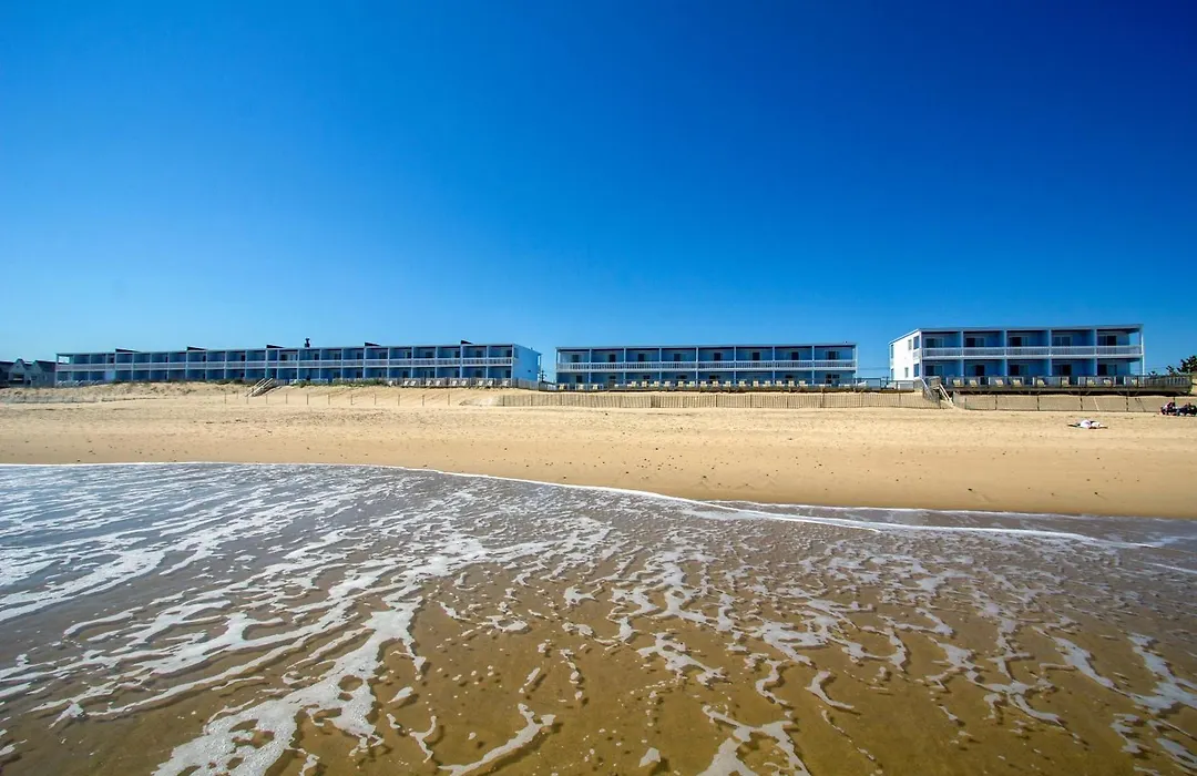 Montauk Blue Hotel, rated 8.8/10 on Booking.com, is a 3-star beachfront hotel offering 82 spacious guest rooms with private terraces and direct beach access. Amenities include an indoor pool, hot tub, and beach service with chairs and umbrellas.