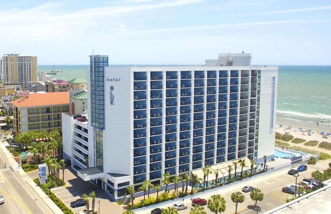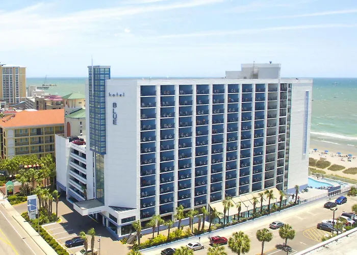 Hotel Blue, a 3-star Myrtle Beach hotel rated 6.9/10 on Booking.com, features modern accommodations and various amenities, including a large oceanfront pool and seasonal swim-up pool bar. The property is ideal for families, providing access to a kids' waterpark and numerous dining options.
