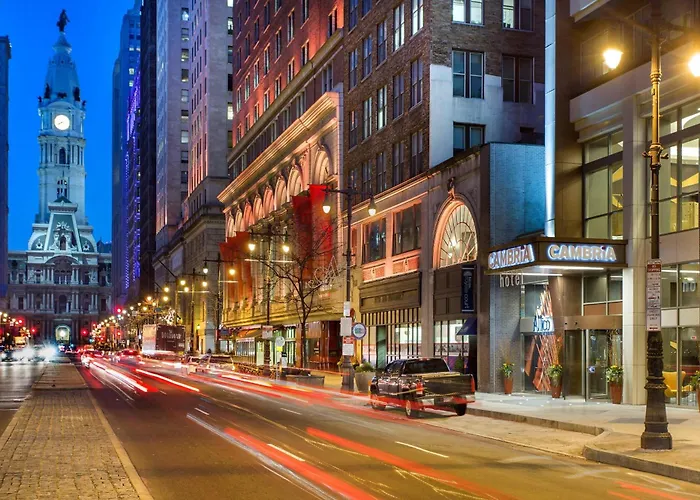 Cambria Hotel Downtown-Center City offers modern accommodations in the Rittenhouse Row district with features such as a rooftop restaurant and bar. This 4-star Philadelphia hotel provides 223 air-conditioned rooms with essential amenities including microwaves, refrigerators, and flat-screen TVs.