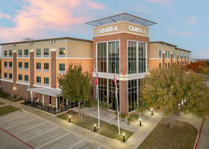 Cambria Hotel Plano - Frisco showcases modern style with classic Texas charm, boasting a convenient location for shopping and dining. This 4-star Plano hotel offers an outdoor heated pool, fitness center, and a full-service restaurant. Guests can enjoy free WiFi and an on-site business center.