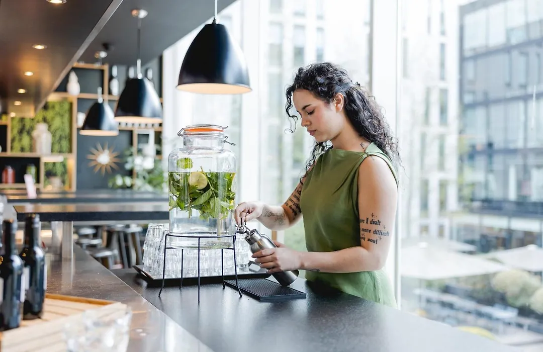 Dining options at Citizenm include the canteenM, which serves a hot & cold breakfast buffet with local treats and various other dishes. Nearby, Italian dining establishments like The Harp and Crazy Dough's Pizza provide additional culinary options for guests.