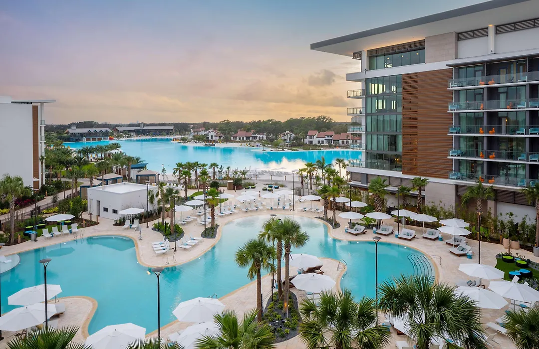Leisure facilities include a luxurious zero-entry pool, a private beach, and access to the aquatic adventure area featuring waterslides and rope swings. Guests can also explore recreational options at the nearby 0.5 hectare Evermore Orlando Resort.