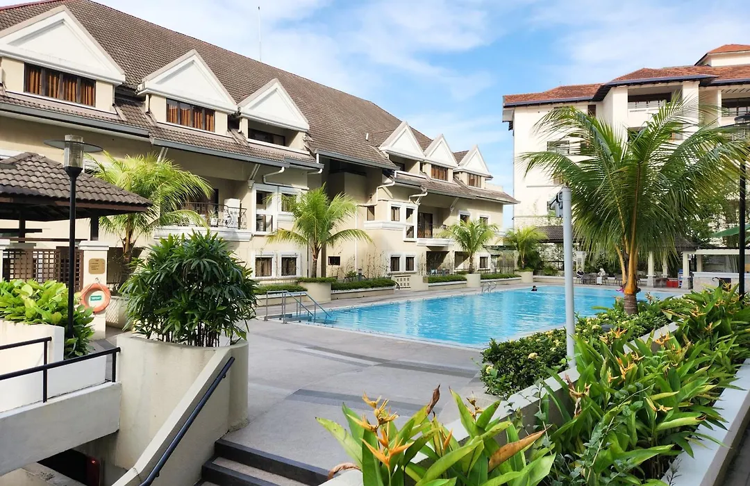 Spacious and secured residences range from studio to three-bedroom apartments, featuring amenities like air conditioning, flat-screen TVs, and fully-equipped kitchens. Some units offer pool views and balconies.