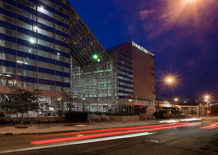 Doubletree By Hilton Hotel South Bend is a 4-star full-service luxury hotel overlooking the St. Joseph River, with an indoor pool and an on-site restaurant. The hotel features thoughtful touches, such as premium bedding and air conditioning in all guestrooms. It connects via skywalk to the adjacent Century Center Convention Complex.