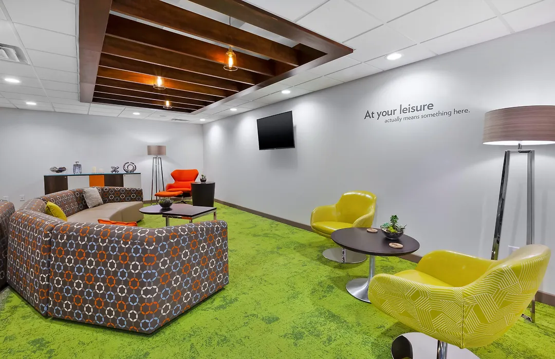Rooms at Even Hotel Ann Arbor are designed for wellness, featuring in-room fitness zones, spa-inspired showers, and ergonomic workspaces. Each of the 107 rooms includes upgraded linens and natural mood lighting, creating a sanctuary for rest and productivity.