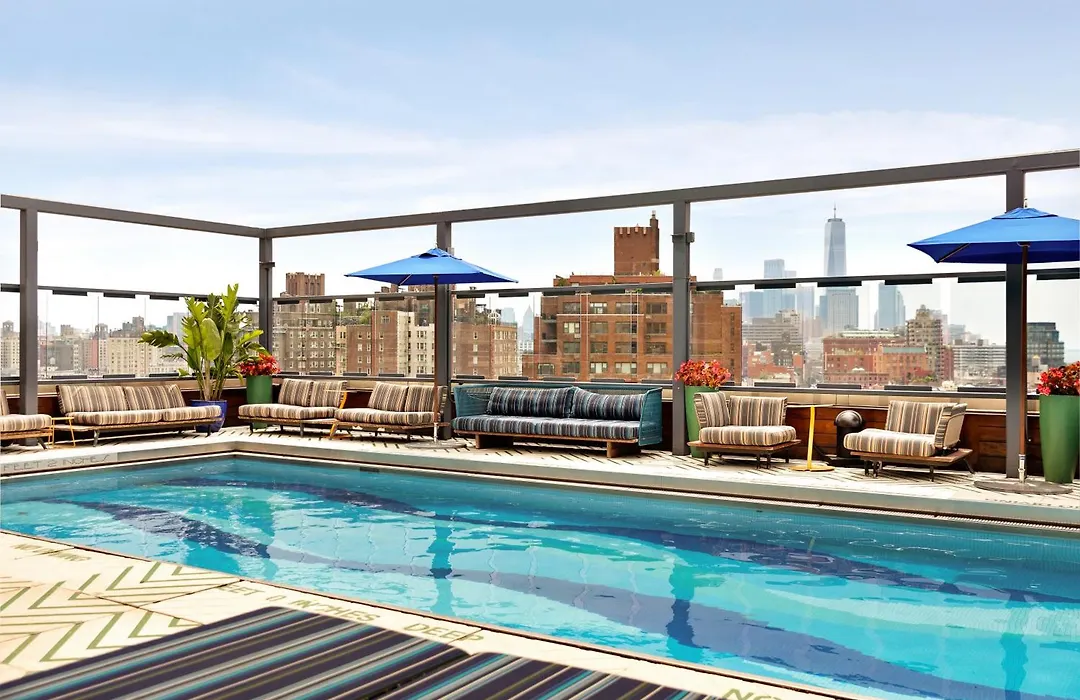Gansevoort Meatpacking NYC is a luxury, full-service resort in the vibrant Meatpacking District, offering a 45-foot heated outdoor rooftop pool and spacious guestrooms. This 5-star New York hotel features a chic lobby lounge and an American bistro, providing a sophisticated experience in a prime location.