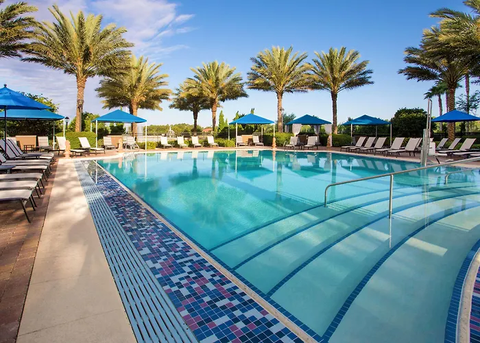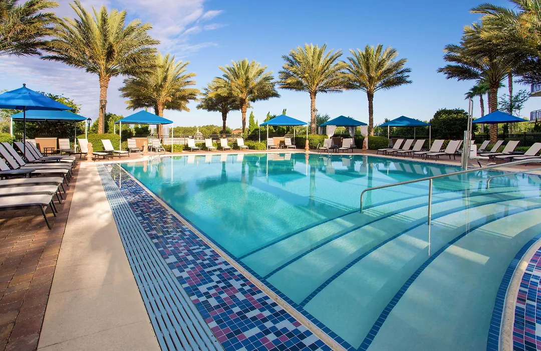 Dining options include Cafe Soleil, a poolside bistro with American cuisine, and The Marketplace Deli, which serves made-to-order pizzas and gourmet sandwiches. A Starbucks kiosk is also available for coffee enthusiasts. Guests can relax at outdoor BBQ facilities for dining while enjoying the Florida sunshine.