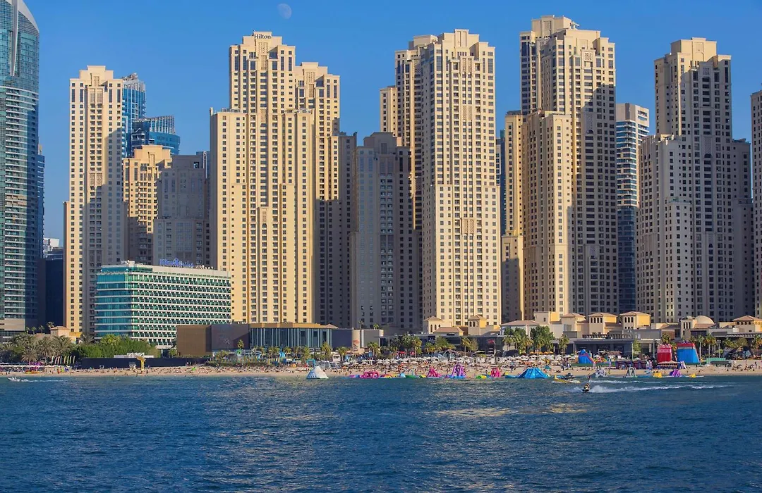 Hilton Dubai The Walk, a 4-star Dubai hotel, offers a vibrant beachfront atmosphere on 'The Walk', a bustling promenade area known for dining, shopping, and entertainment. Guests benefit from amenities such as a fully equipped gym, multiple dining options, and private beach access.