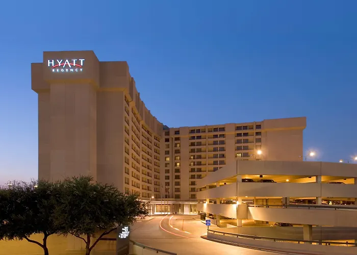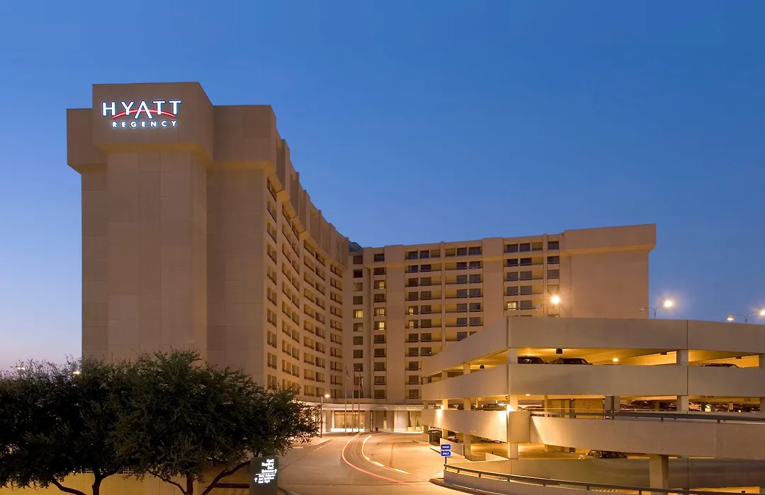 Hyatt Regency DFW International Airport is an 8.0/10 rated, three-star hotel situated within Terminal C of Dallas/Fort Worth International Airport. The hotel features an outdoor pool, a 24-hour fitness center, and complimentary airport transfers.