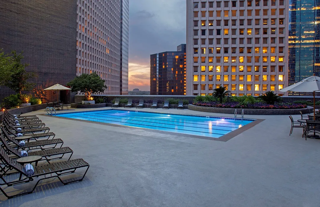Hyatt Regency Houston Downtown, a 4-star hotel with an 8.8/10 rating on Booking.com, features amenities such as a heated outdoor pool and a fitness center. The hotel also offers multiple on-site dining venues, including Spindletop, the city's first rotating dining room.
