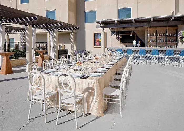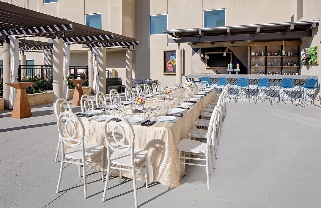 Dining options include the newly renovated LadyBird Bar + Kitchen, serving American cuisine. Guests can savor dishes inspired by local flavors while enjoying views of Downtown Austin.