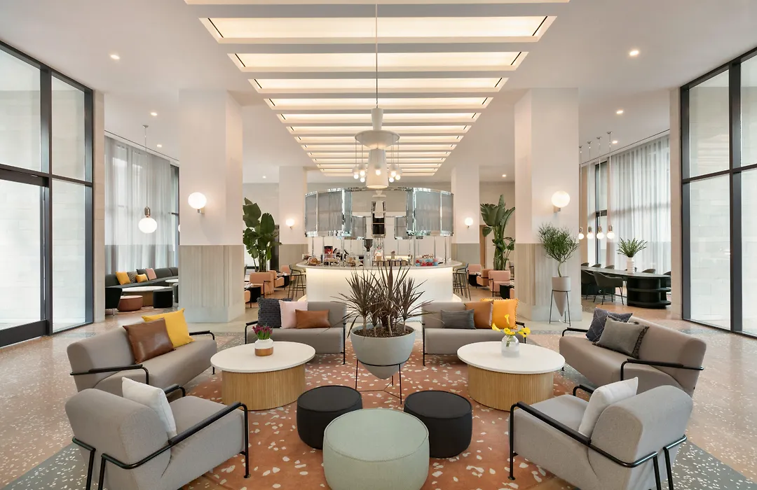 The hotel offers dining options such as Brooklyn Eating, celebrating local cuisine and unique flavors. Guests can enjoy fresh pastries and locally roasted BKG coffee at the Lobby Bar. Seasonal outdoor dining is available on the rooftop, complemented by a diverse menu.