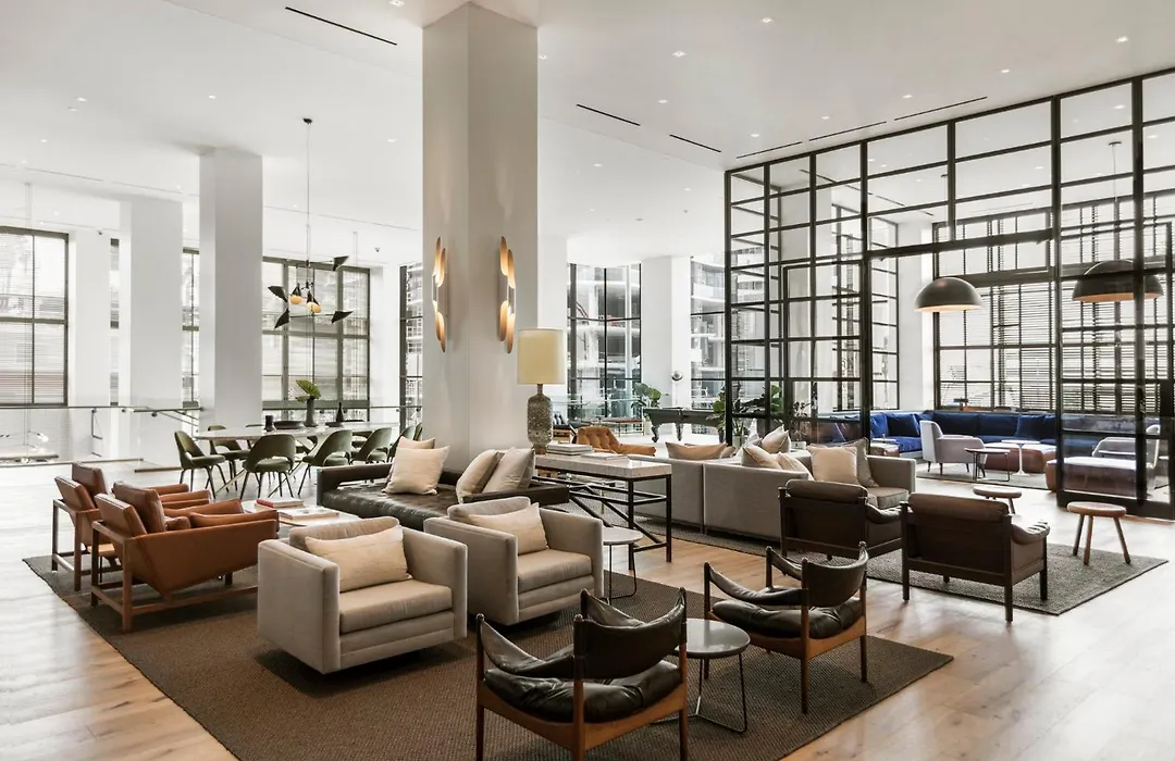 Dining options include Jane Q, which serves American comfort food, and Ever Bar, known for its eclectic cocktail list. Guests can relax at the rooftop pool or take advantage of unique outdoor events such as live music performances.