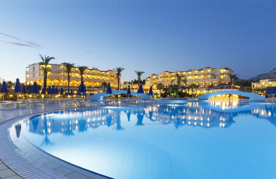Lindos Princess Beach Hotel offers spacious accommodations and a variety of family-friendly amenities, making it a top-rated 4-star resort in Lardos. Guests can enjoy six outdoor swimming pools, a wellness center with spa treatments, and diverse dining options as part of their all-inclusive experience.