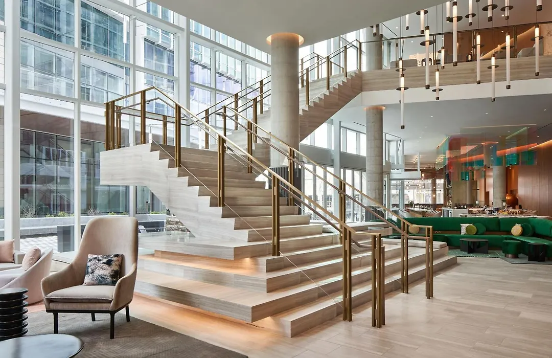 Marriott Bethesda Downtown At Marriott HQ is a 3.5-star hotel with 245 spacious rooms and modern amenities in the city center. Guests can enjoy a rooftop bar and a restaurant with local influences. The hotel features a fitness center and an outdoor entertainment area.